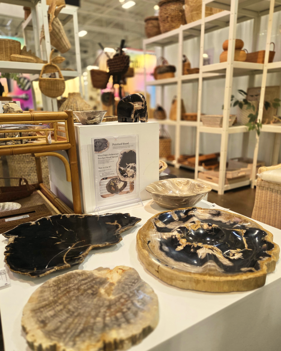 From August 10–12, our booth became a hub of creativity, storytelling, and cultural exchange. Visitors had the chance to explore a thoughtfully curated collection of our signature pieces – from timeless woven baskets and home accessories to the unique petrified wood collection, each piece carrying the spirit of skilled artisanship and sustainability.
