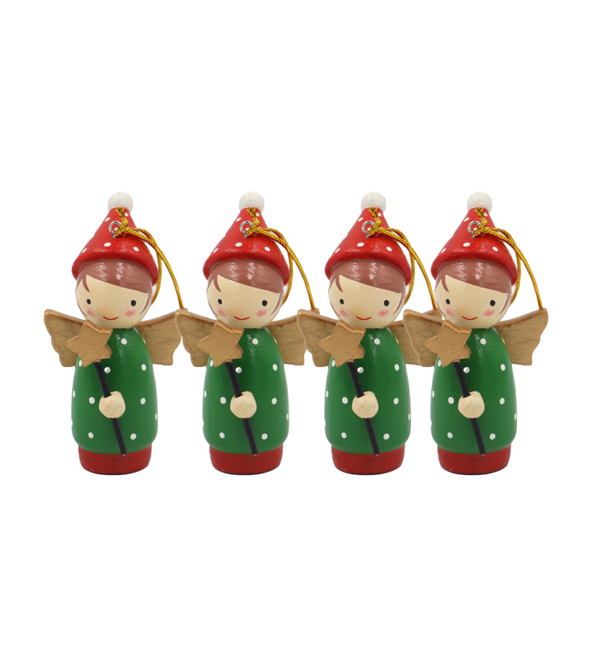 Angel Ornament-Green-Star Wand-Set of 4